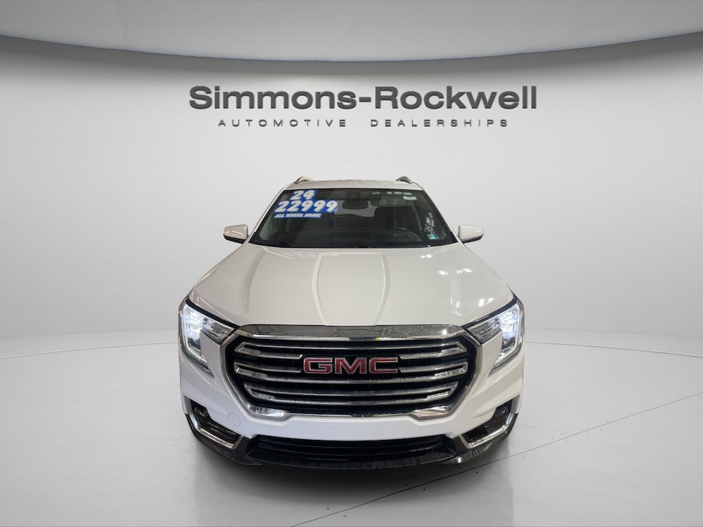 SUMMIT WHITE, SLT PREFERRED EQUIPMENT GROUP includes standard equipment, SEATS, FRONT BUCKET (STD), JET BLACK, PERFORATED LEATHER-APPOINTED SEAT TRIM, ENGINE, 1.5L TURBO DOHC 4-CYLINDER, SIDI, VVT (175 hp [131.3 kW] @ 5800 rpm, 203 lb-ft of torque [275.0 N-m] @ 2000 - 4000 rpm) (STD), AXLE, 3.47 FINAL DRIVE RATIO, AUDIO SYSTEM, 8" DIAGONAL GMC INFOTAINMENT SYSTEM includes multi-touch display, AM/FM/SiriusXM stereo, Bluetooth streaming audio for music and most phones, Android Auto and Apple CarPlay capability for compatible phones, advanced voice recognition, in-vehicle apps, personalized profiles for infotainment and vehicle settings (STD), Wireless Apple CarPlay/Wireless Android Auto, Windows, power with rear Express-Down, Windows, power with front passenger Express-Down.